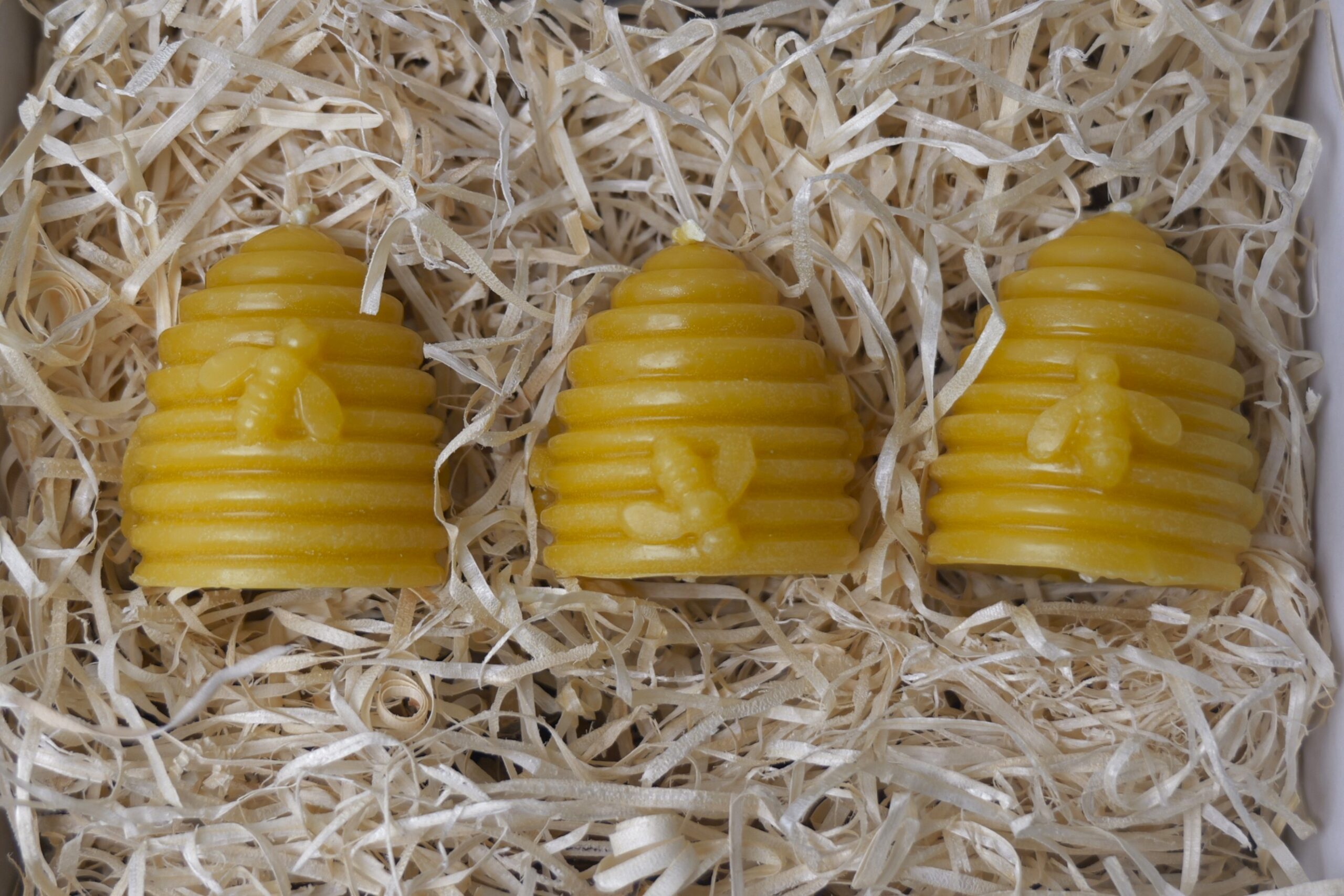 This set of 3 beeswax beehive candles is made by us at Devon honey and candles in small batches.